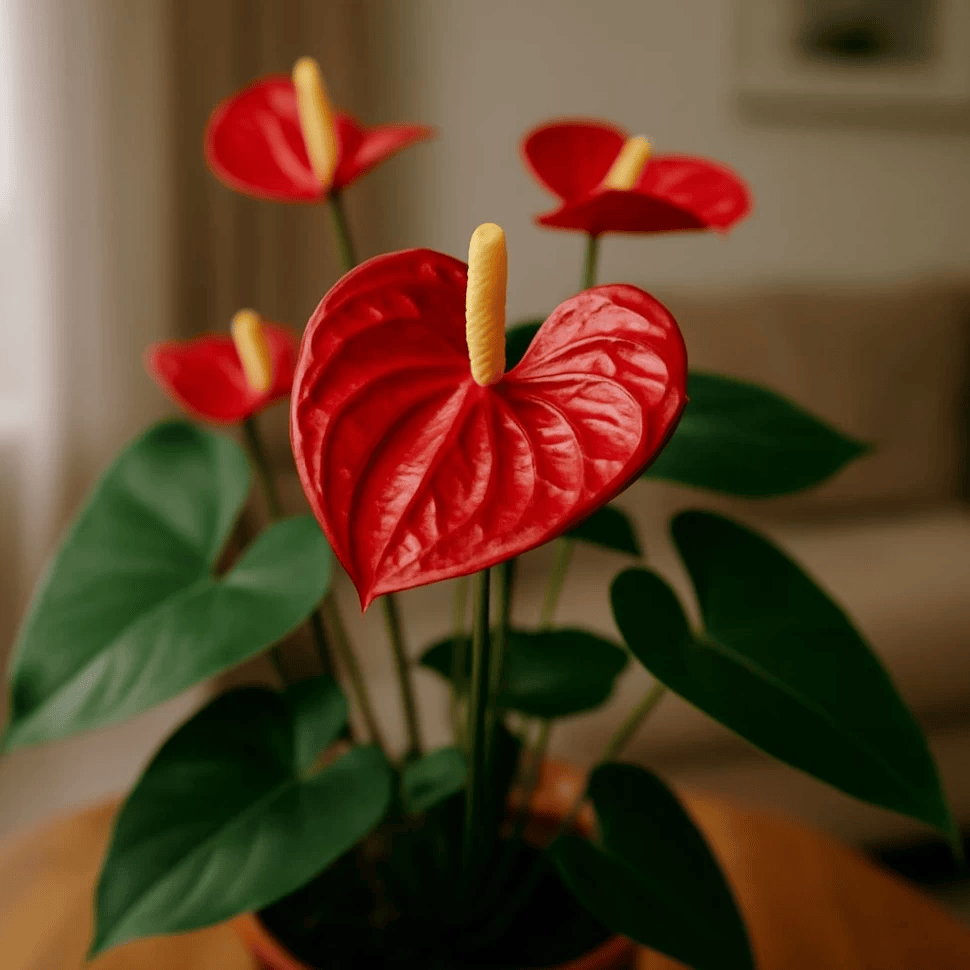 Антуриум принадлежит к семейству ароидных. Он родом из тропических лесов Южной Америки, где произрастает во влажной и тёплой среде. Его крупные листья и глянцевые прицветники, которые часто принимают за цветы, делают его желанным гостем на подоконниках. Окрас "цветков" варьируется от насыщенно-красного до белого, розового и даже фиолетового.